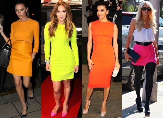 4. Neon – This Neon trend came back in a big way this spring. The Neon trend is so fresh and colourful, it adds a bit of fun to your overall look. This is definitely a keeper. Check out these celebs embracing the neon trend below: